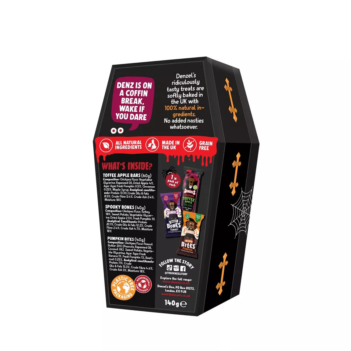 R.I.P. into tasty treats this spooky season with Denzel’s Tomb of Treats gift box for dogs.