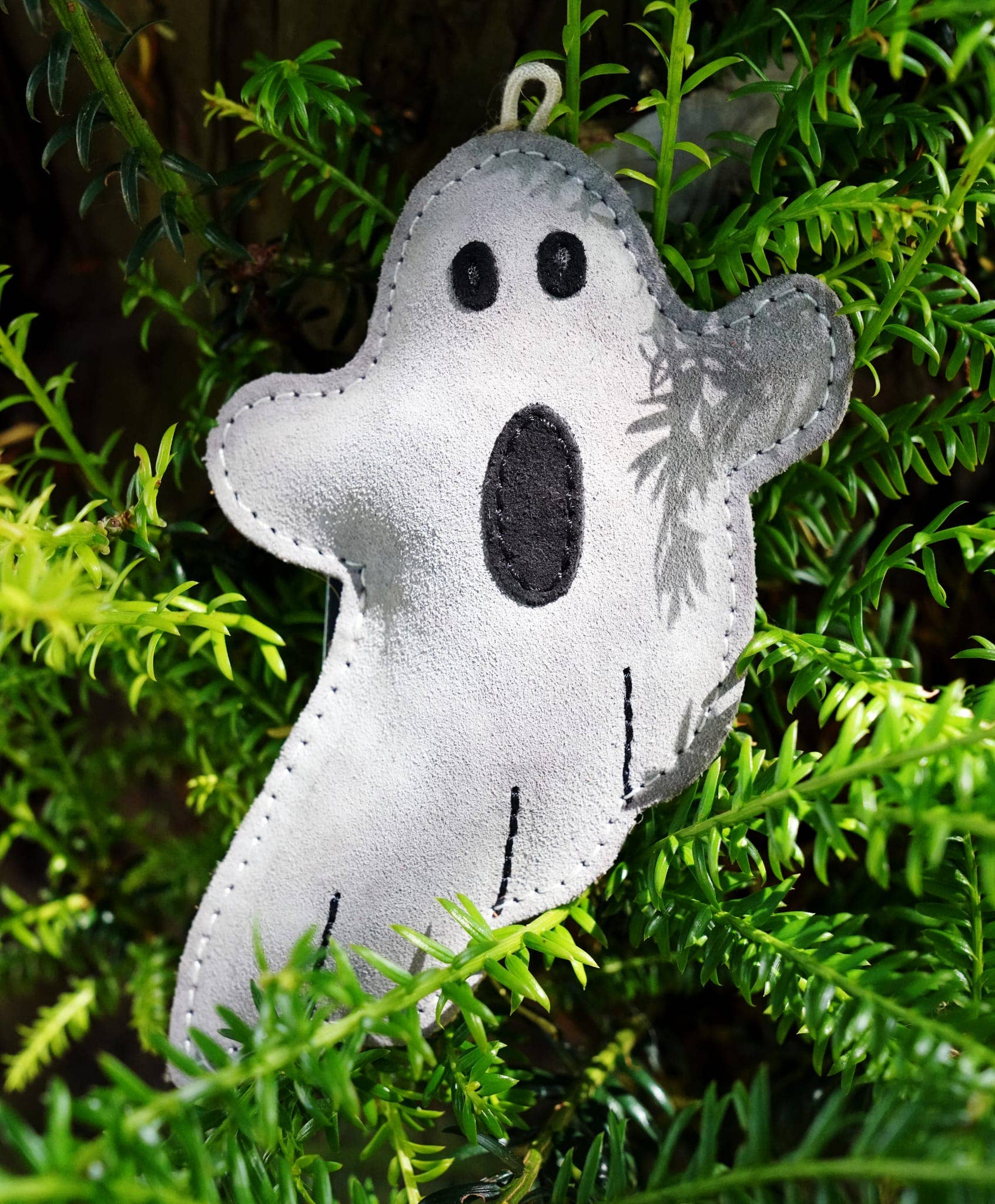 Halloween inspired ghost toy. Our small breed eco toys are designed to be slightly smaller and lighter, so that they dont miss out on all the fun. Made from Suede and filled with coconut husks, ensuring a safer playing experience, no plastics or toxic materials are used. Once your dog has finished playing with the toy, it is recyclable and compostable, ensuring that no plastic ends up in landfill.