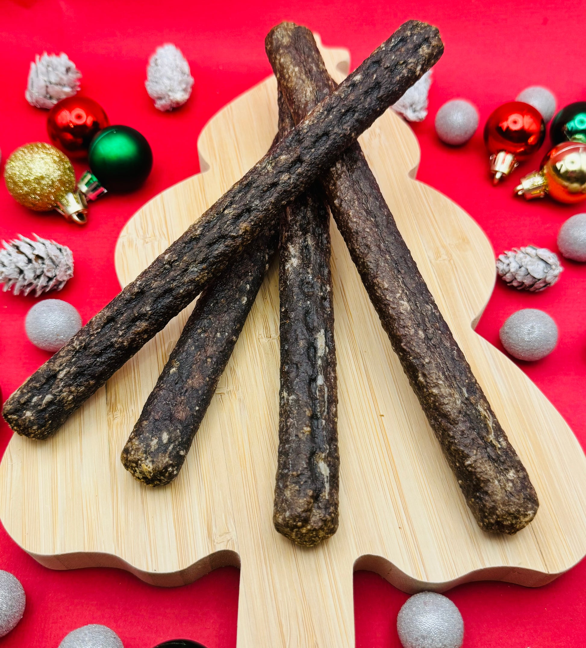 Treat your pup to something truly special this festive season with our Gourmet Festive Sticks, now back for Christmas 2025. Available in three irresistible flavours—3 Bird Roast, Turkey and Cranberry, or Duck and Orange—these premium treats deliver wholesome nutrition wrapped in pure indulgence. Packed with high-quality protein and crafted from responsibly sourced ingredients, they're perfect for dogs of all sizes and breeds. Whether you're rewarding good behaviour during training or simply spoiling your furry friend, these sticks are ideal for pups with allergies, digestive sensitivities, or pickier palates. Give your dog nothing but the finest this Christmas.