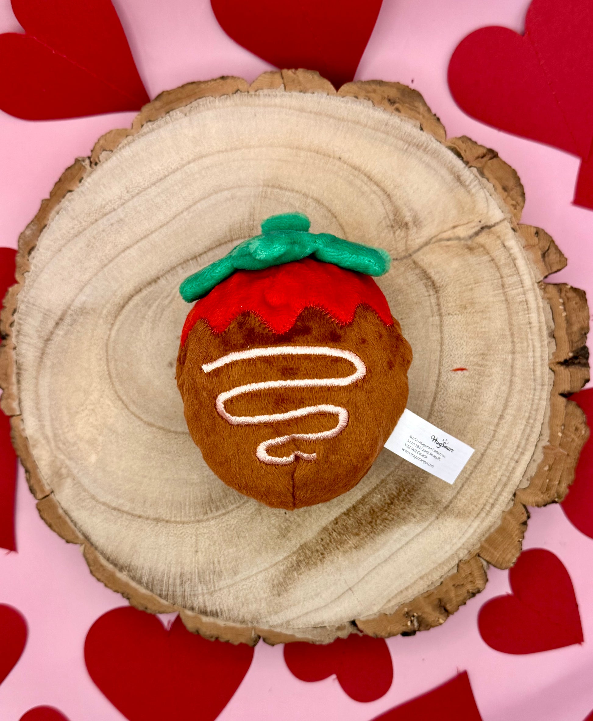 Our Valentine’s Chocolate Strawberry Ball toy is as sweet as your pup’s kisses. This 2-in-1 toy features a plush strawberry layer that’s designed to be destroyed, revealing a hidden spiky ball inside for double the fun. Perfect for fetch and cuddle sessions, it’s sure to be your pup’s new love at first squeak!
