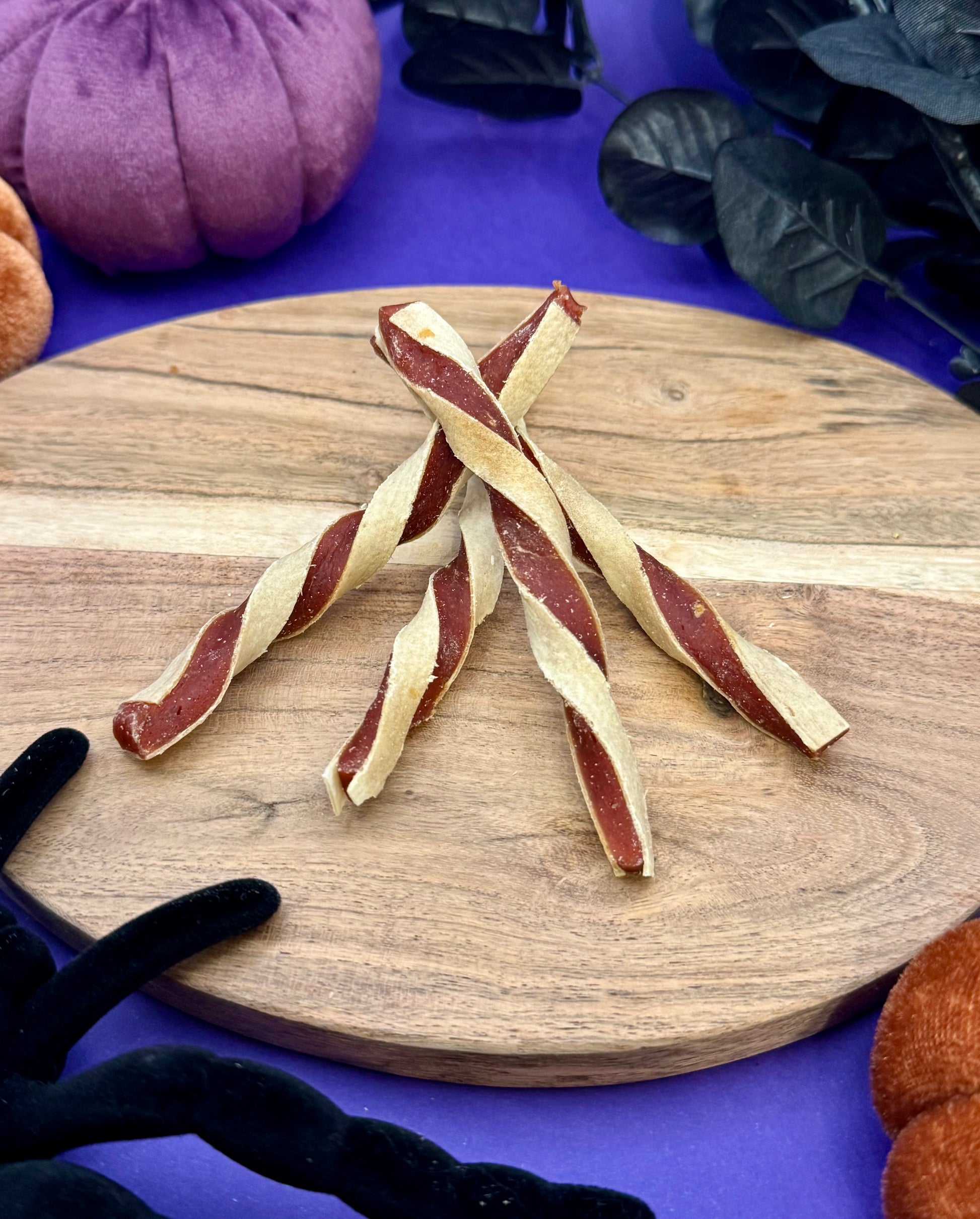 Lamb & Cod Sandwich Twists combine two tasty proteins—succulent lamb and mild cod—in a fun twisted shape. Their soft bite and rich meat content make them a perfect snack for pups with sensitive tummies, as well as for playful puppies and wise old dogs who prefer a gentler treat.