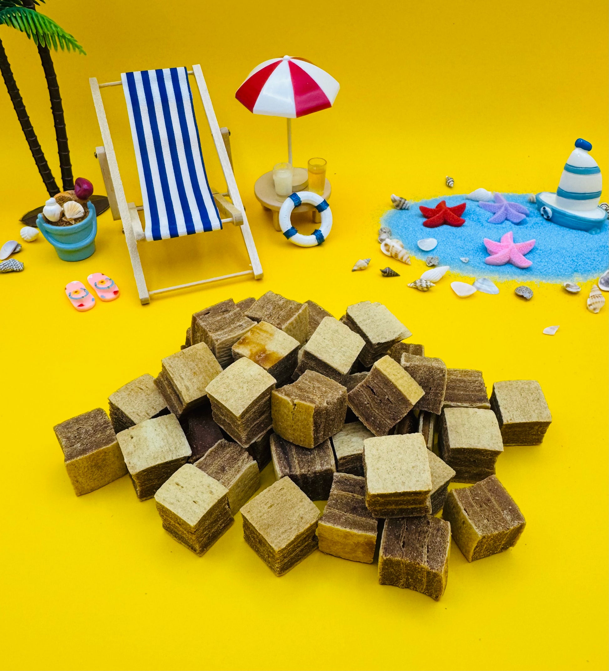 Keep your furry friend wagging with our Rabbit and Fish Meaty Cubes! These tasty cubes combine the rich flavors of rabbit and fish, making them an irresistible treat for dogs. Perfect for training sessions or just a little snack to brighten your pup’s day, they’re packed with protein to support energy and vitality. Made with quality ingredients, these meaty bites are sure to keep tails wagging and tongues licking for more fun and rewards!
