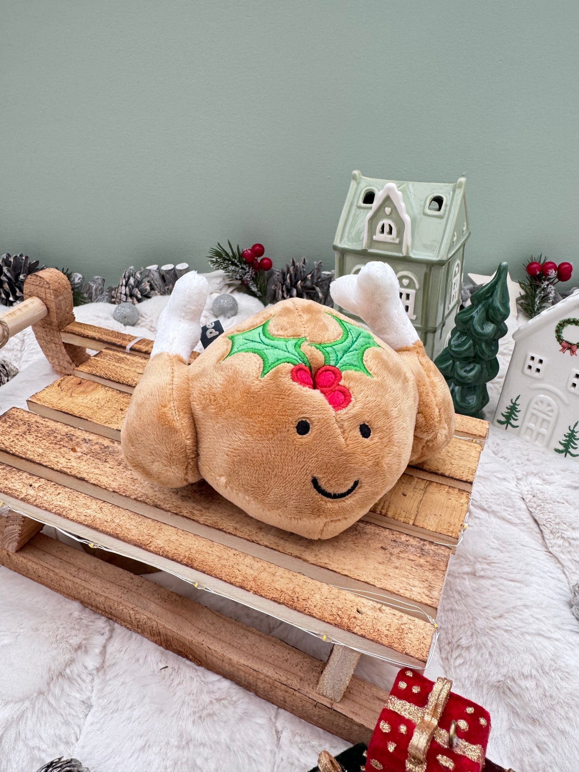 Let your pooch join in the fun of Christmas diner with their very own Turkey Plush Dog Toy. Made from super soft fleece with embroidered holly, eyes and mouth. Soft, cuddly and super cute. Great for playing fetch and encouraging exercise or could be your best friends new favourite snuggle buddy. Includes a built in squeaker, perfect for playful dogs. Not suitable for large dogs or strong chewers.