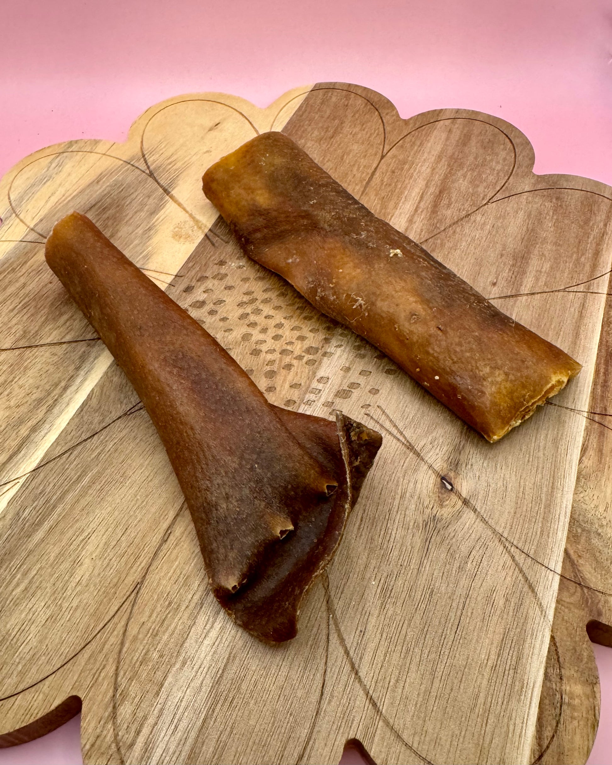 Our Wild Boar Skins are great long-lasting chews for small dogs. A perfect dental aid, they help to remove tartar from your dogs teeth. They make ideal natural chewing enjoyment for dogs that have common allergies or sensitivities and of all breeds and age groups, and they help clean their gut as well.