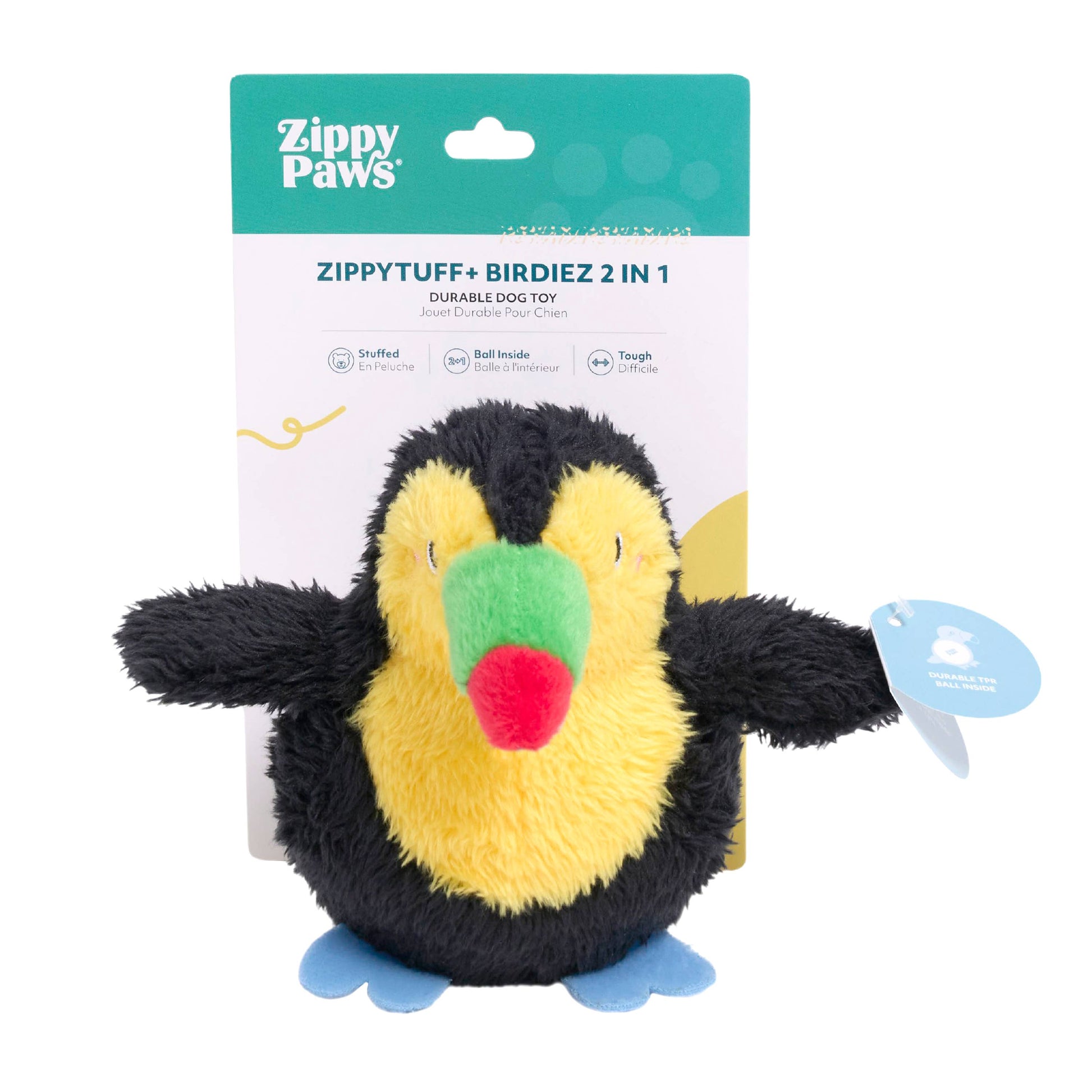 ZippyTuff+ 2-in-1 Birdiez are adorable 2-in-1 toys featuring a soft plush exterior that when ripped apart reveals an inner toy ball constructed of a durable TPR material.